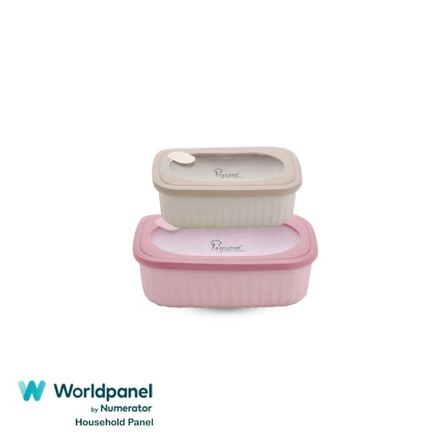 FYI | Makluman:La Gourmet Snack N' Sip 1600ml + 380ml Plastic Rectangular Lunch Box Set - Pink & Cream