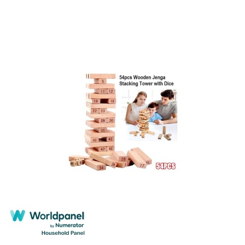 54pcs Wooden Jenga Stacking Tower with Dice -